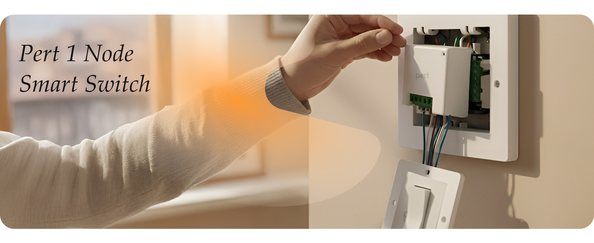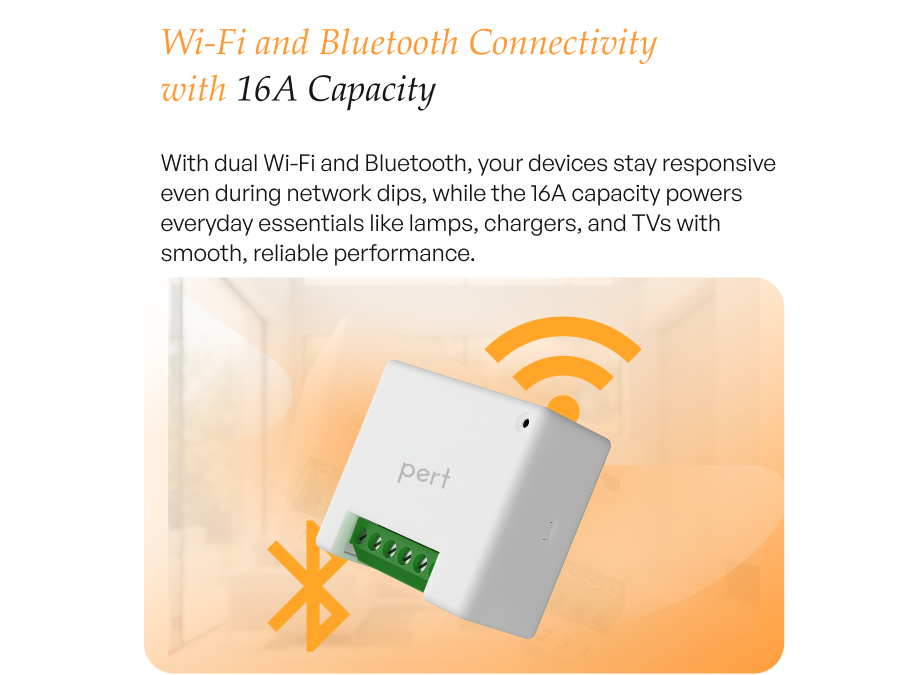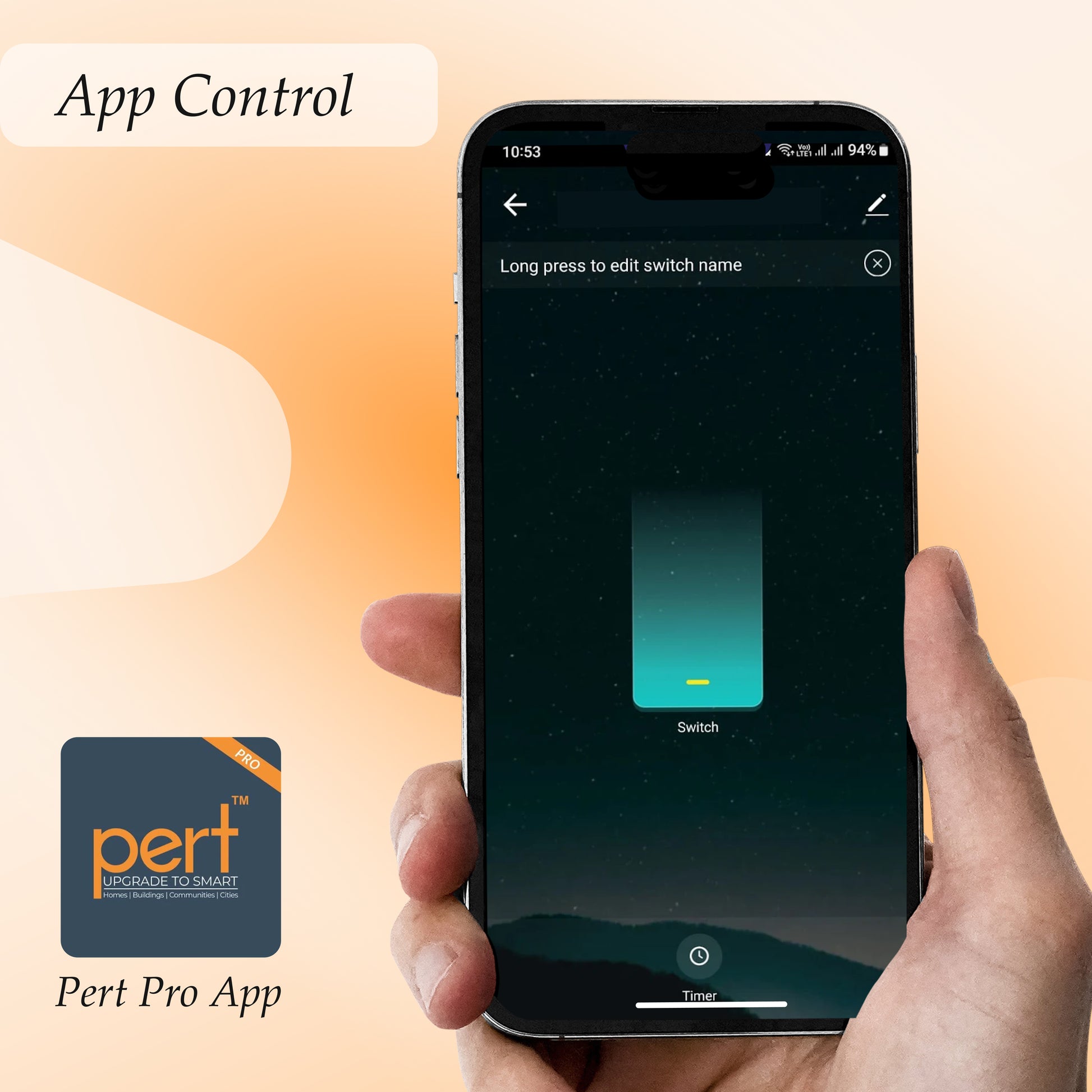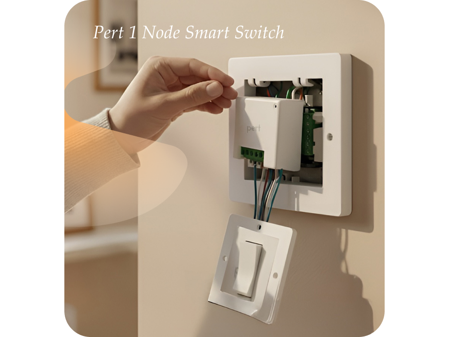 The  1-Node Retrofit Smart Switch transforms your existing switchboard into a smart control hub without changing your existing switches or wall plates. Control up to 1 individual lights or appliances  upto 16amps using your smartphone or voice, with full support for Amazon Alexa and Google Assistant. The compact design installs neatly behind your switchboard, keeping your interiors intact. Manage devices from anywhere using the PertPro app—set schedules, automate routines, or remotely switch devices on/off. Built-in WiFi and Bluetooth ensure reliable connectivity, even during internet outages. Ideal for modern Indian homes, this Made in India smart switch brings energy efficiency, comfort, and convenience with zero rewiring or renovation.