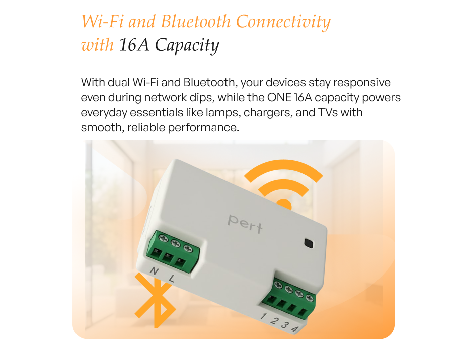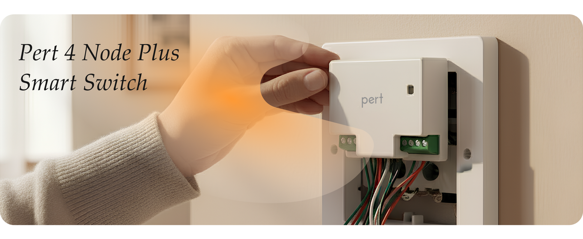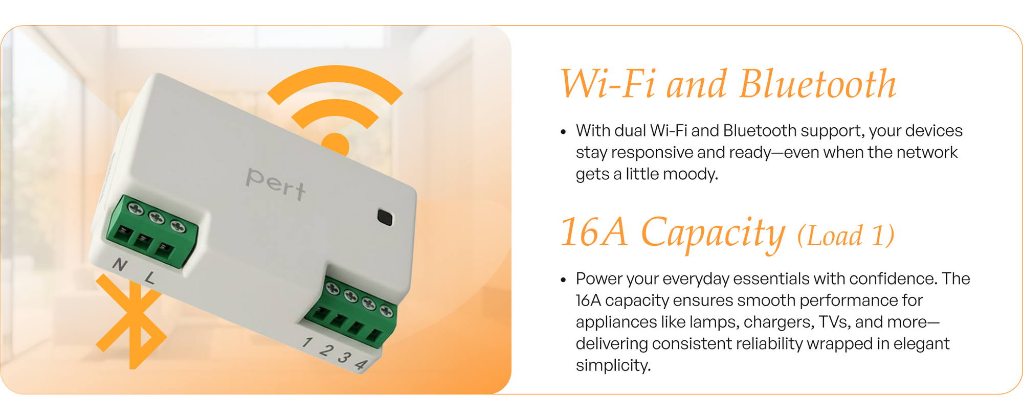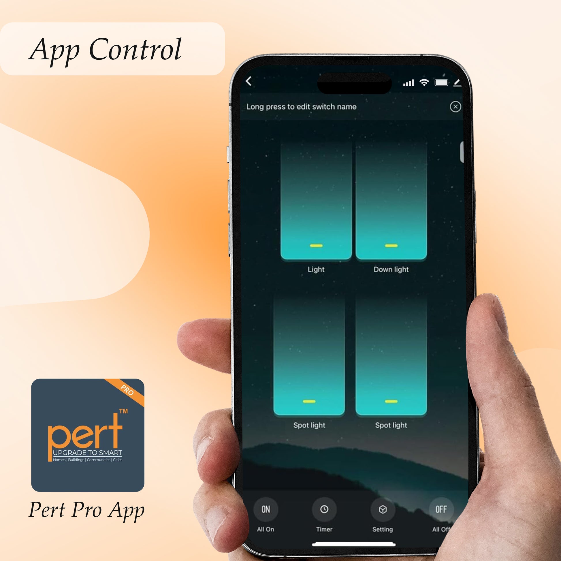 The  4-Node Plus Retrofit Smart Switch transforms your existing switchboard into a smart control hub without changing your existing switches or wall plates. Control up to 3 individual lights or appliances and 1 Heavy Load Like Geyser/Air Conditioner upto 16amps using your smartphone or voice, with full support for Amazon Alexa and Google Assistant. The compact design installs neatly behind your switchboard, keeping your interiors intact. Manage devices from anywhere using the PertPro app—set schedules, automate routines, or remotely switch devices on/off. Built-in WiFi and Bluetooth ensure reliable connectivity, even during internet outages. Ideal for modern Indian homes, this Made in India smart switch brings energy efficiency, comfort, and convenience with zero rewiring or renovation.